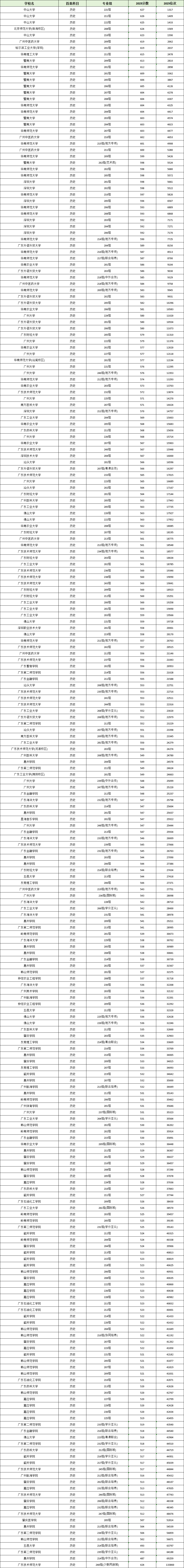 这些院校以综合类、师范类为主,均为省内乃至全国知名高校,专业实力强、就业认可度高,深受历史类高分考生青睐。