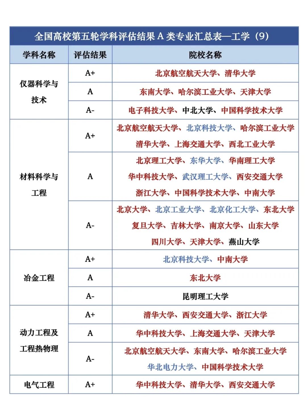 下图为2024年全国高校第五轮学科评估结果A类专业一览表(完整版),供查阅。
