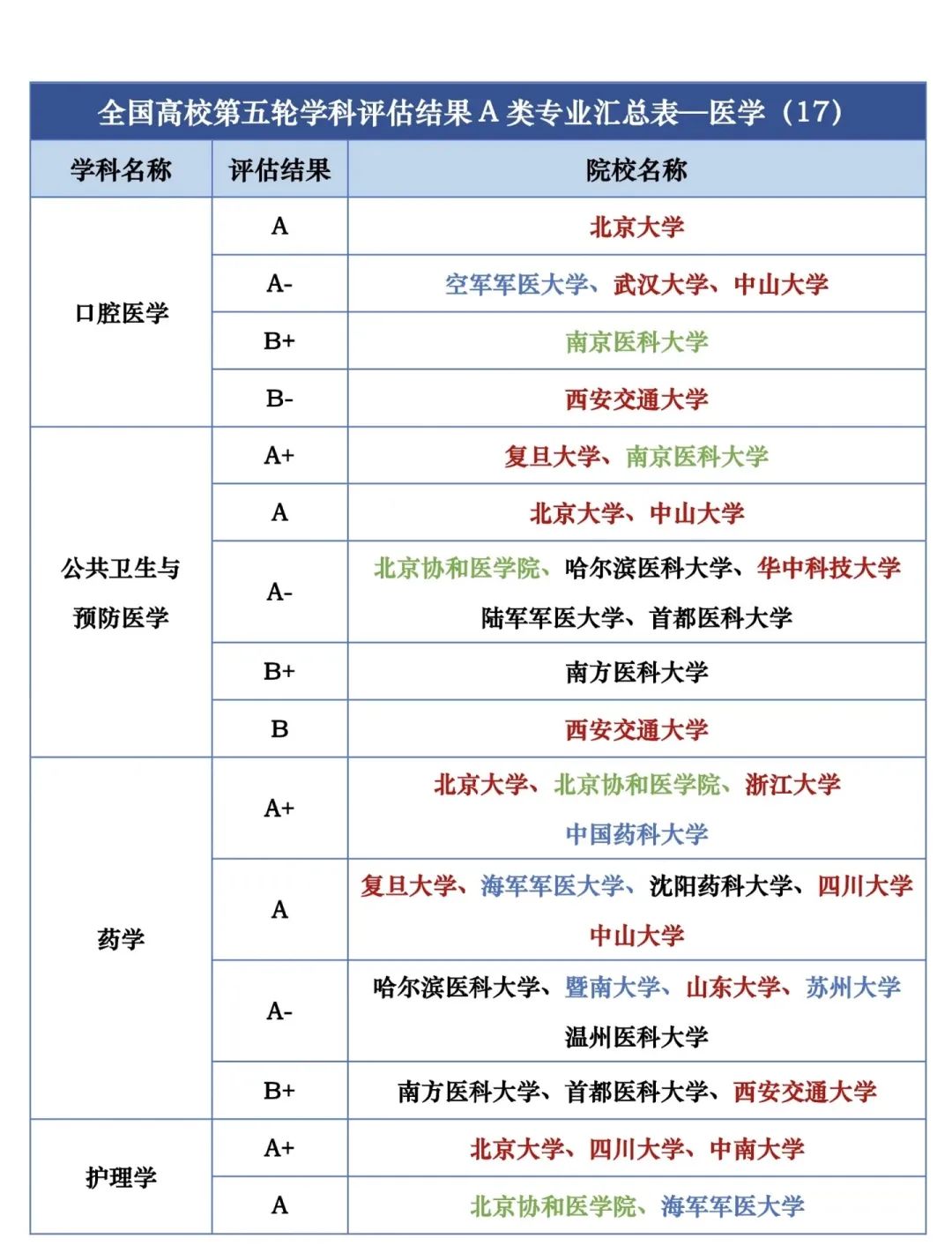 医学类中,南京医科大学的基础医学、临床医学、口腔医学、公共卫生与预防医学、护理学等学科均获批A类。