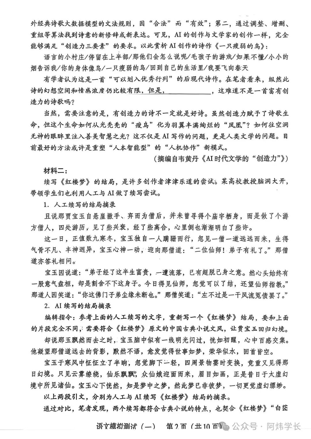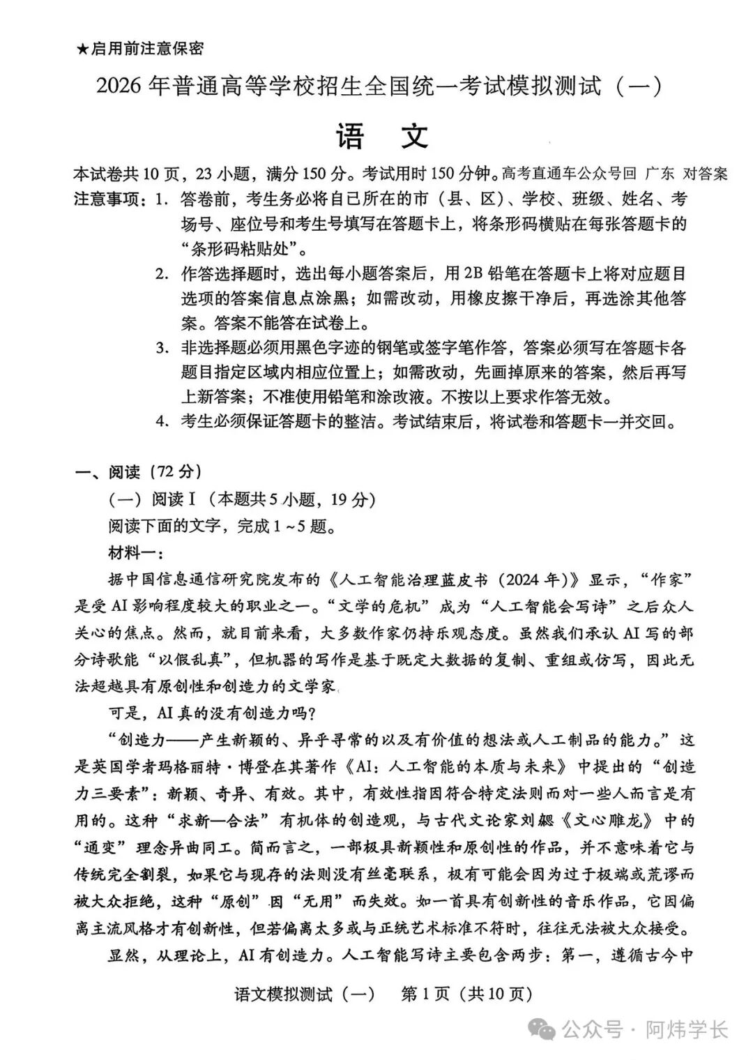一、2026广东一模语文试卷及答案