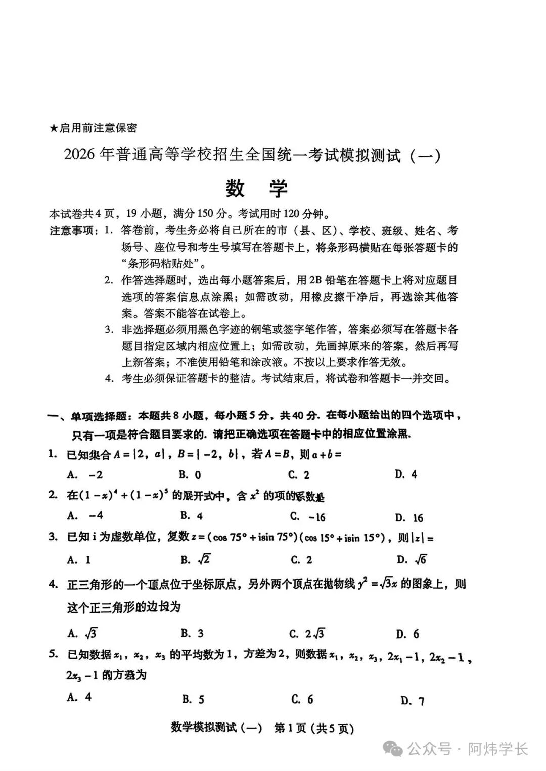 二、2026广东一模数学试卷及答案
