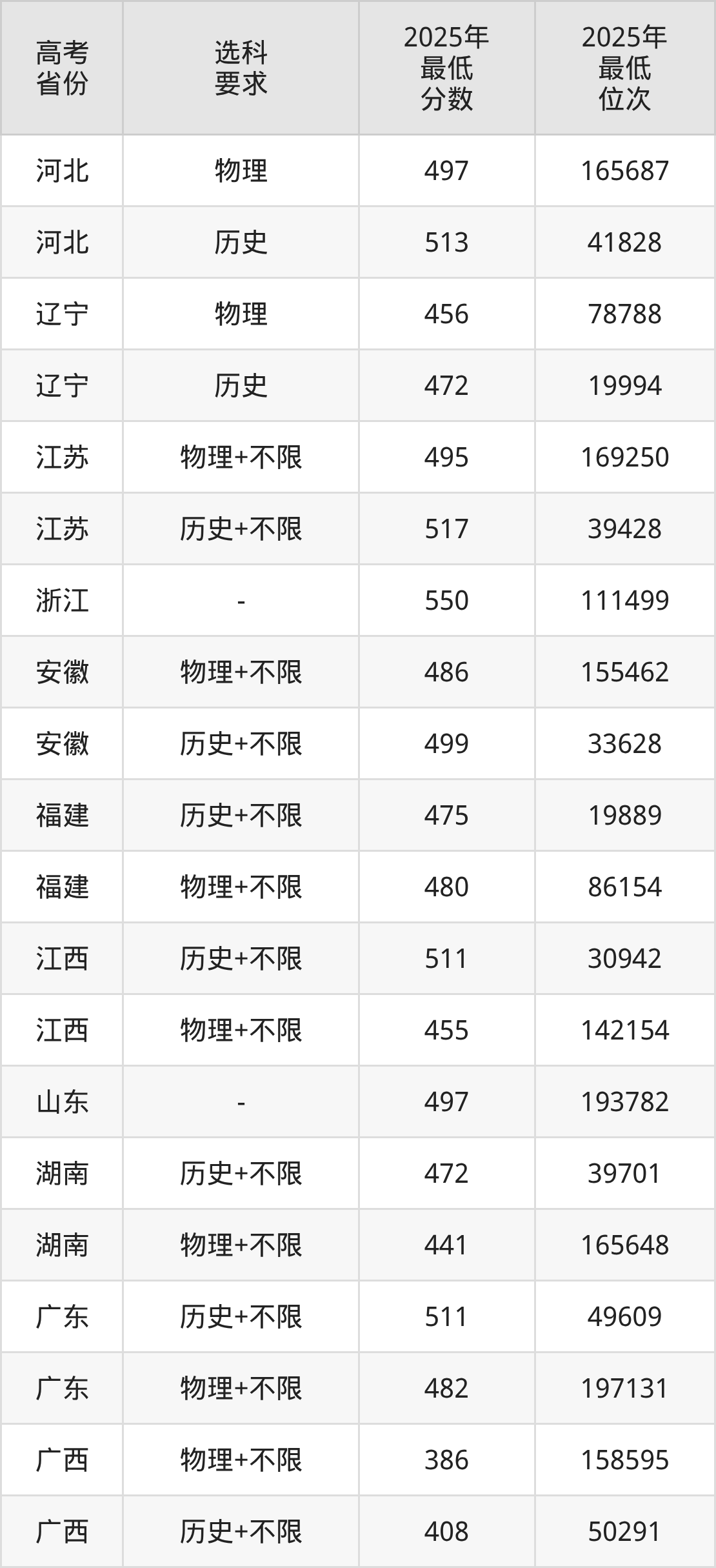 在2025年江苏高考物理类招生时,公办本科收分最低的是江苏建筑职业技术学院02组,最低分是220分、位次是66935位。再看南京财经大学红山学院,2025年在江苏物理类的最低录取分数线是495分,最低位次是169250位。