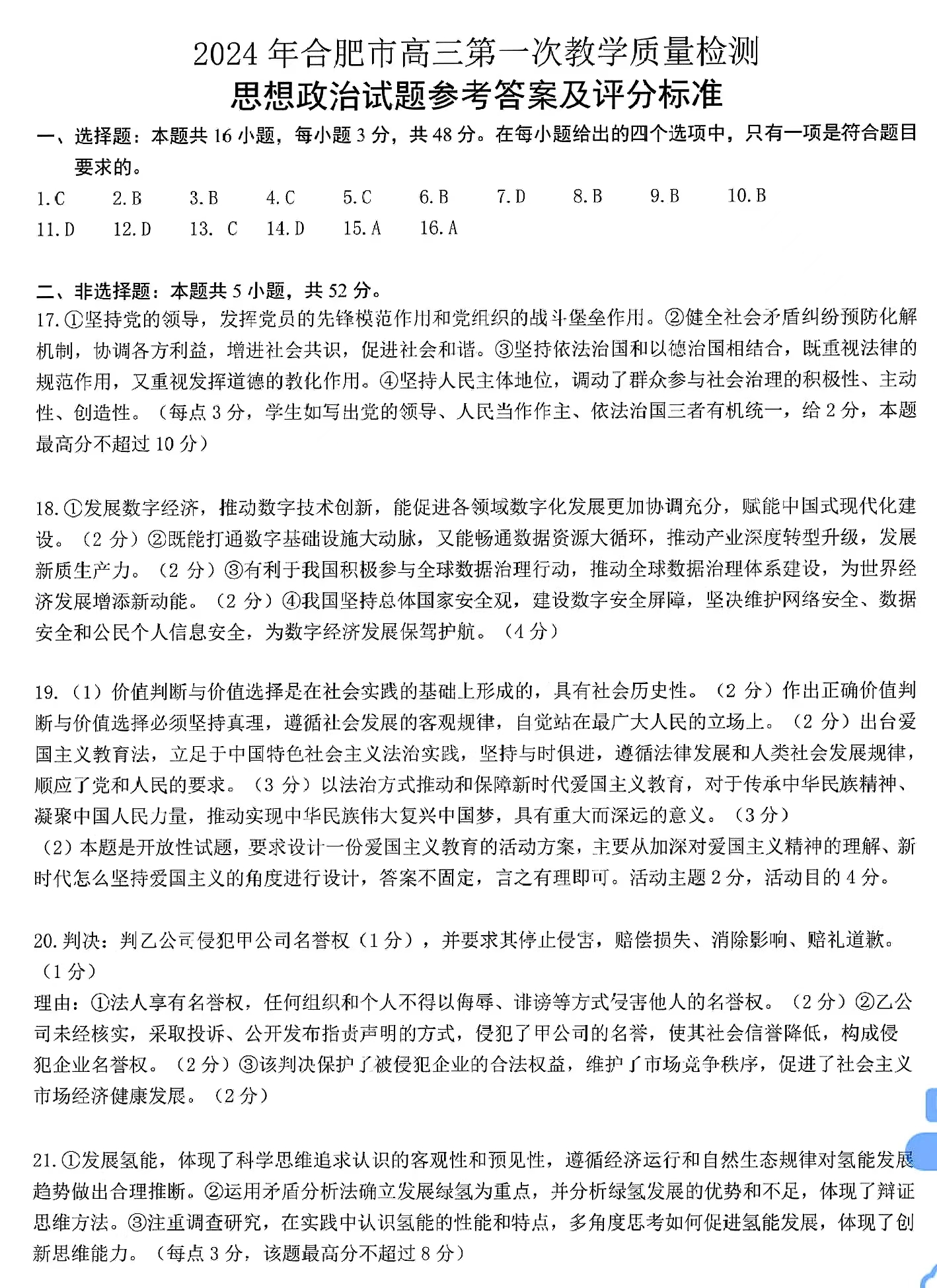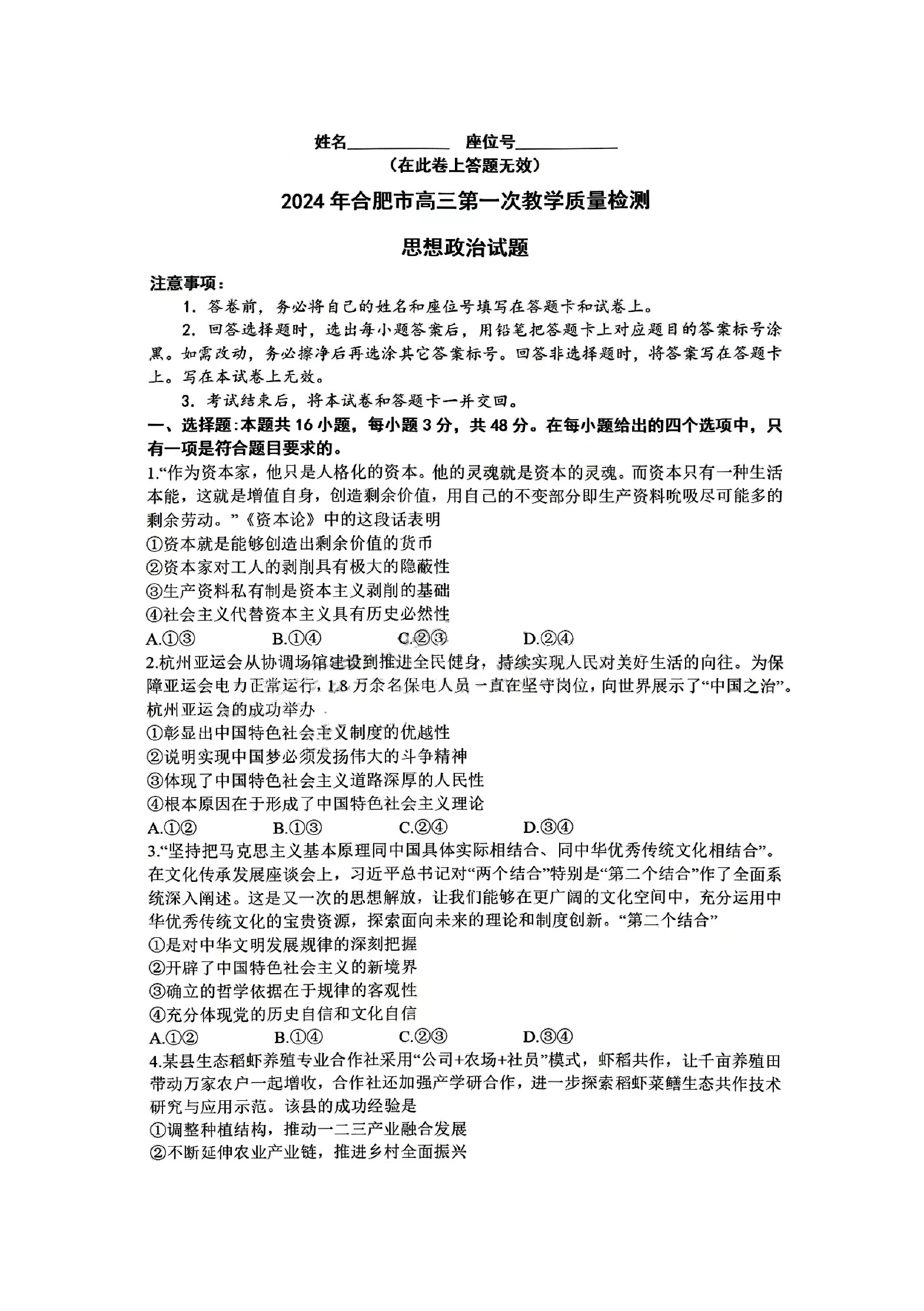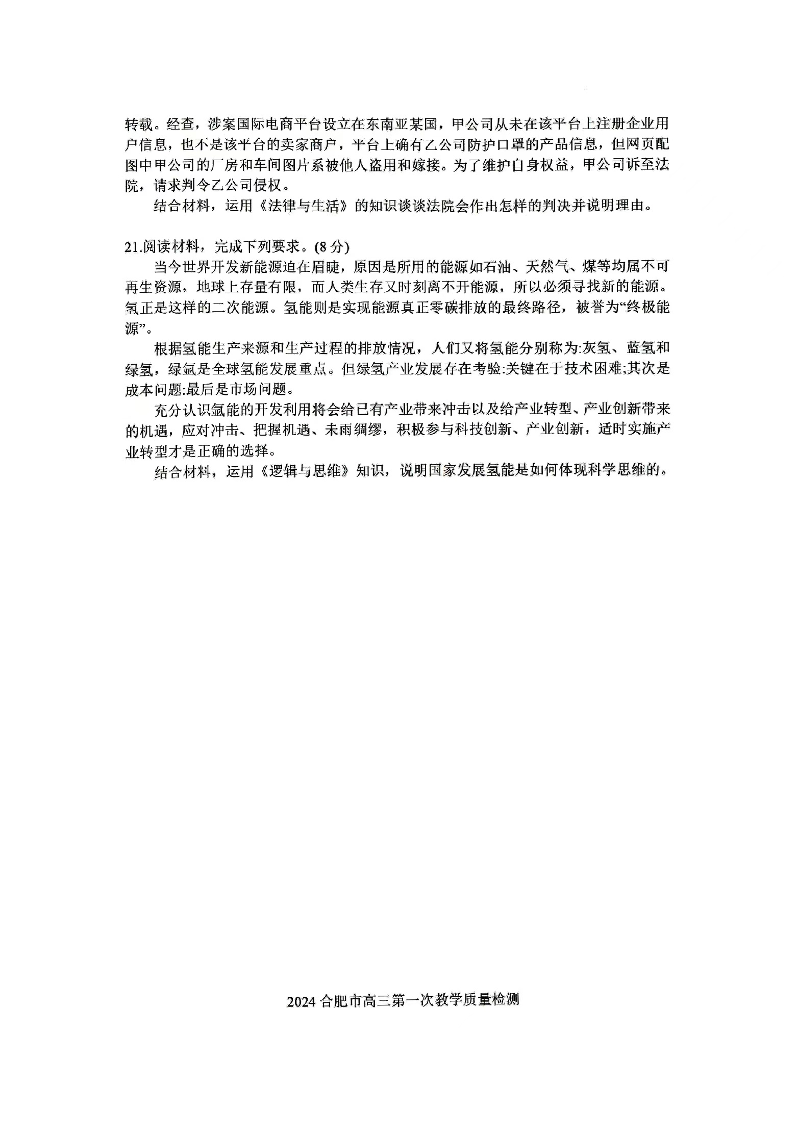 七、2024合肥一模政治试题及参考答案