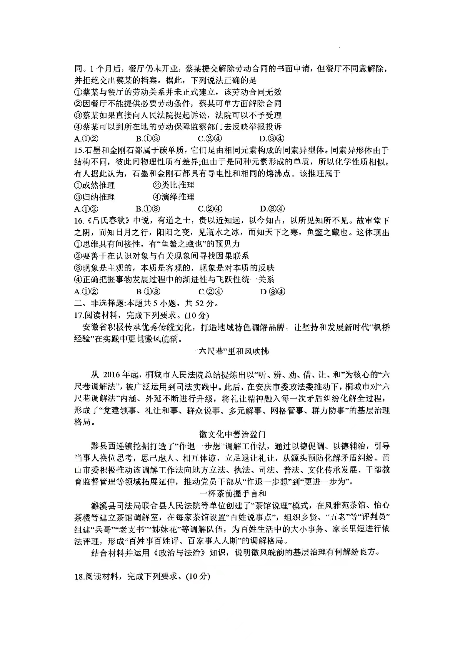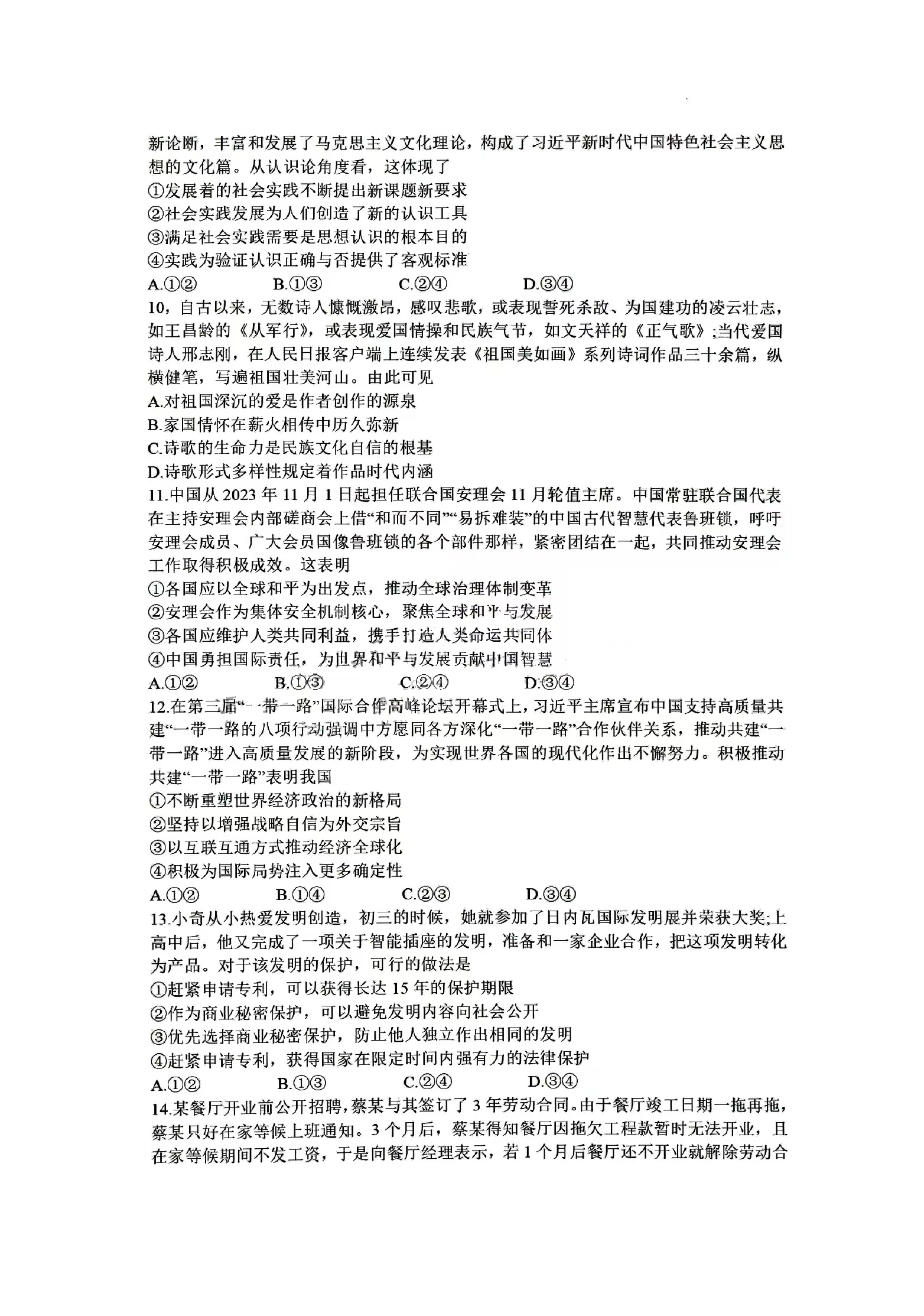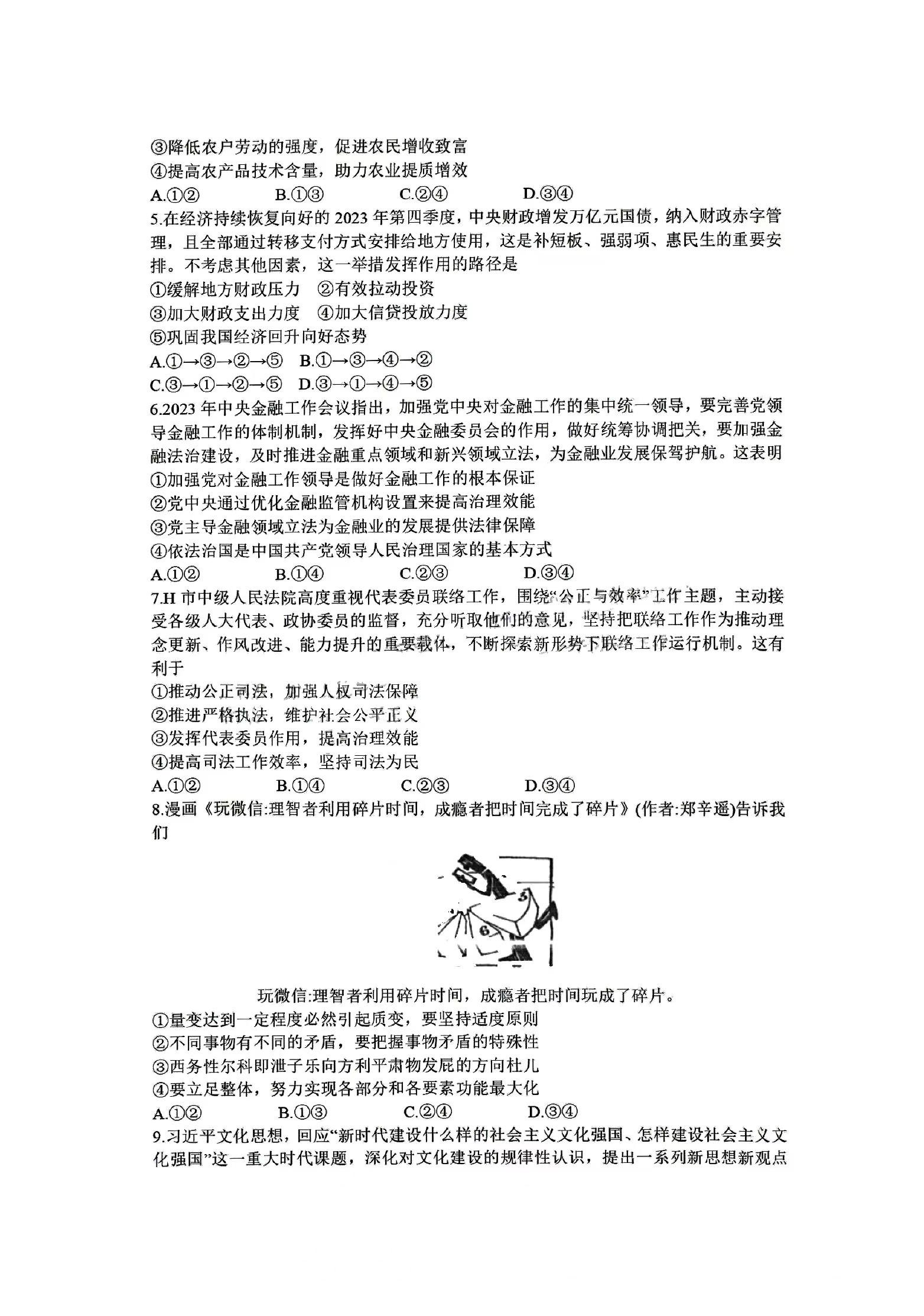 七、2024合肥一模政治试题及参考答案
