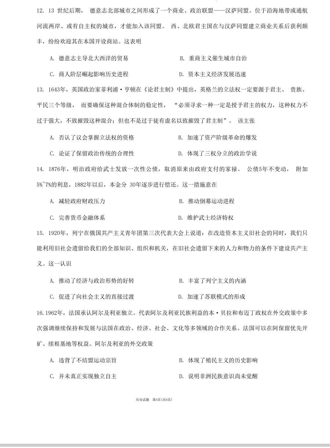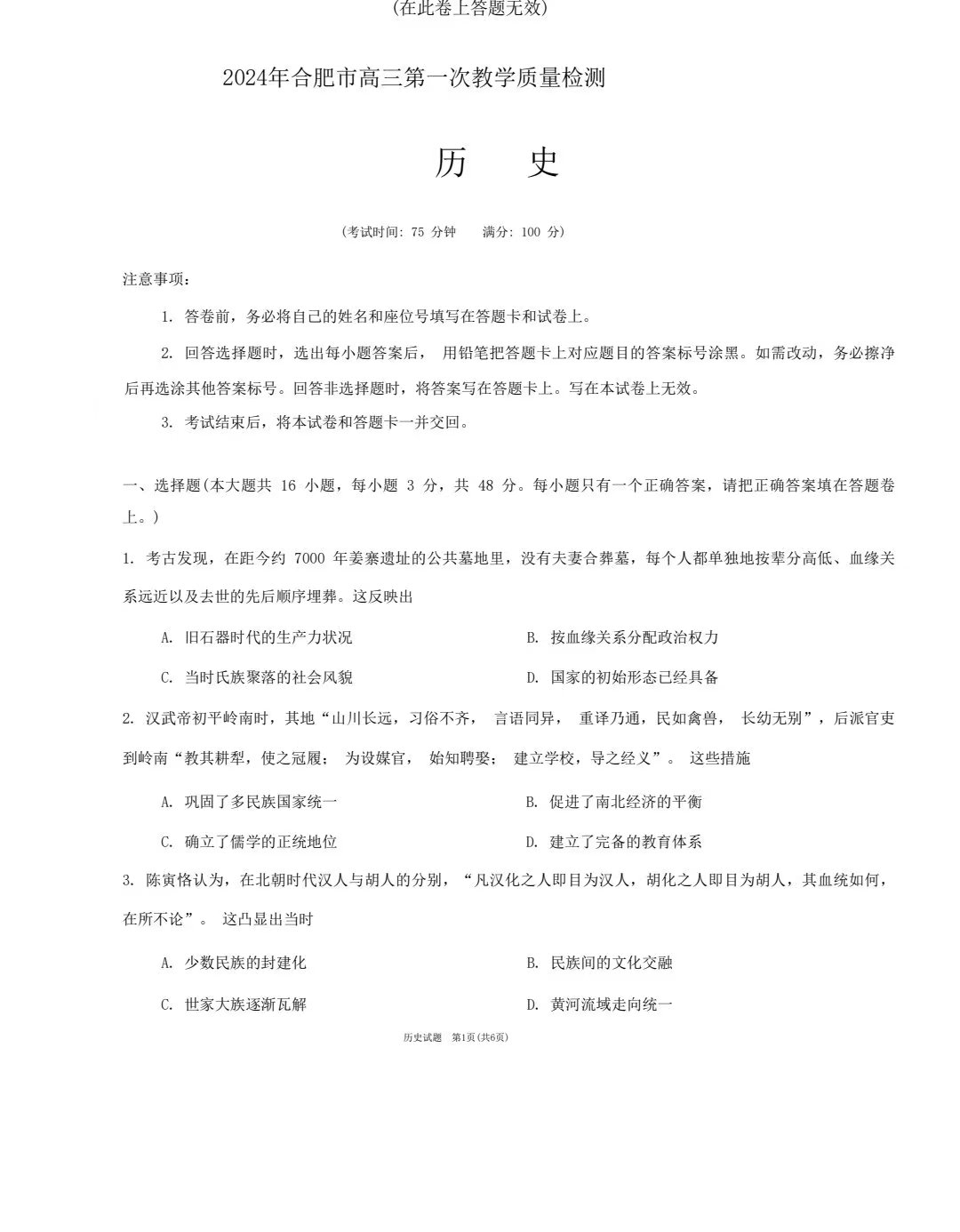 六、2024合肥一模历史试题及参考答案