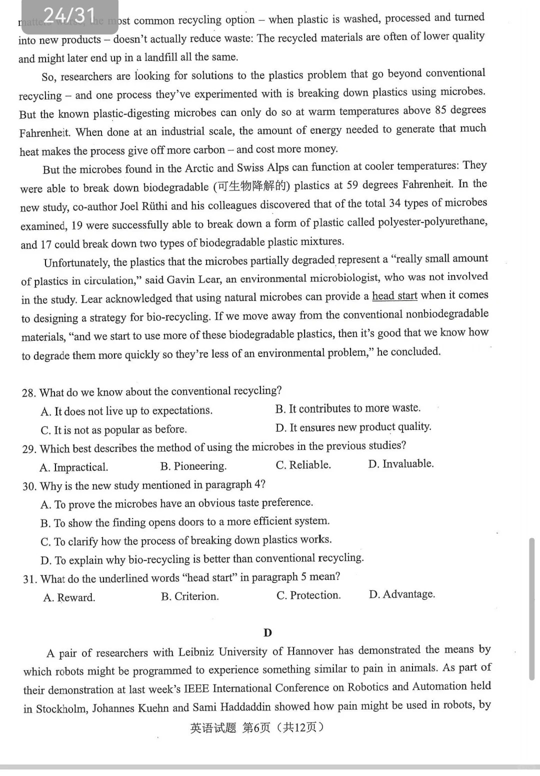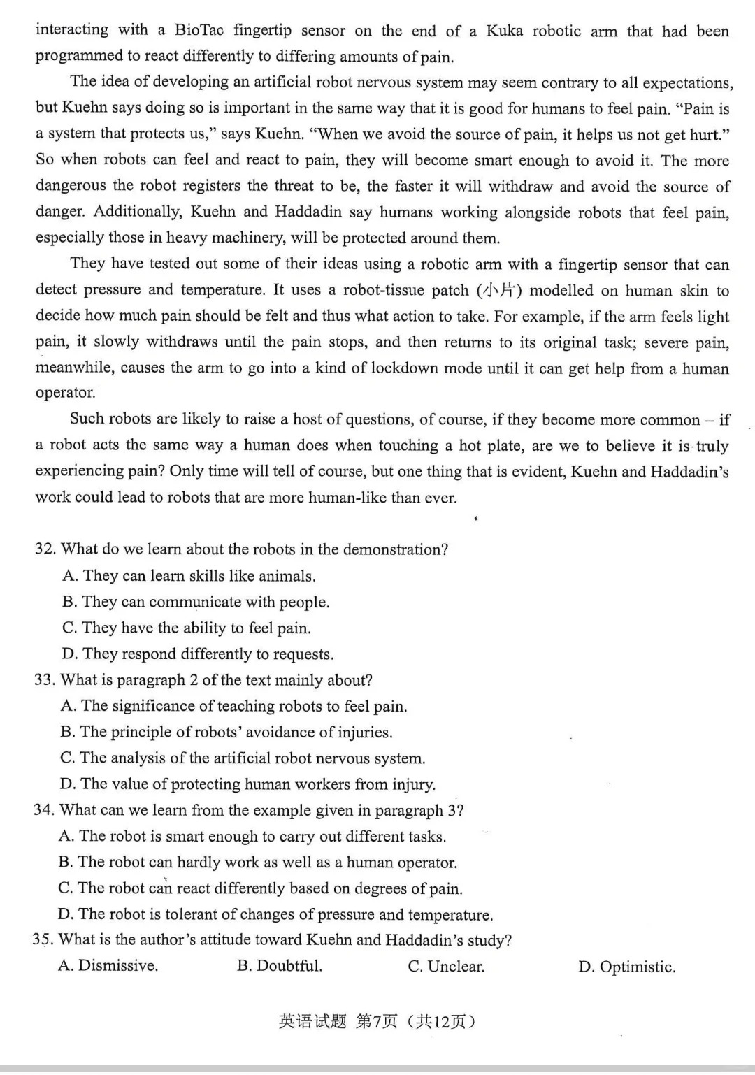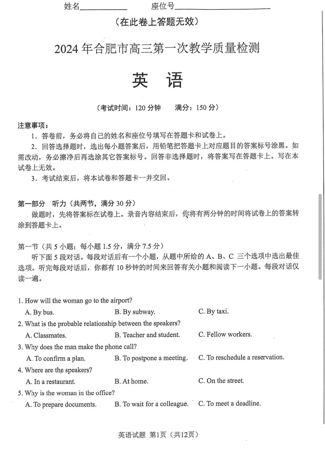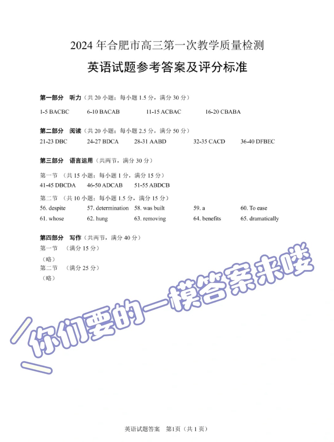 三、2024合肥一模英语试题及参考答案