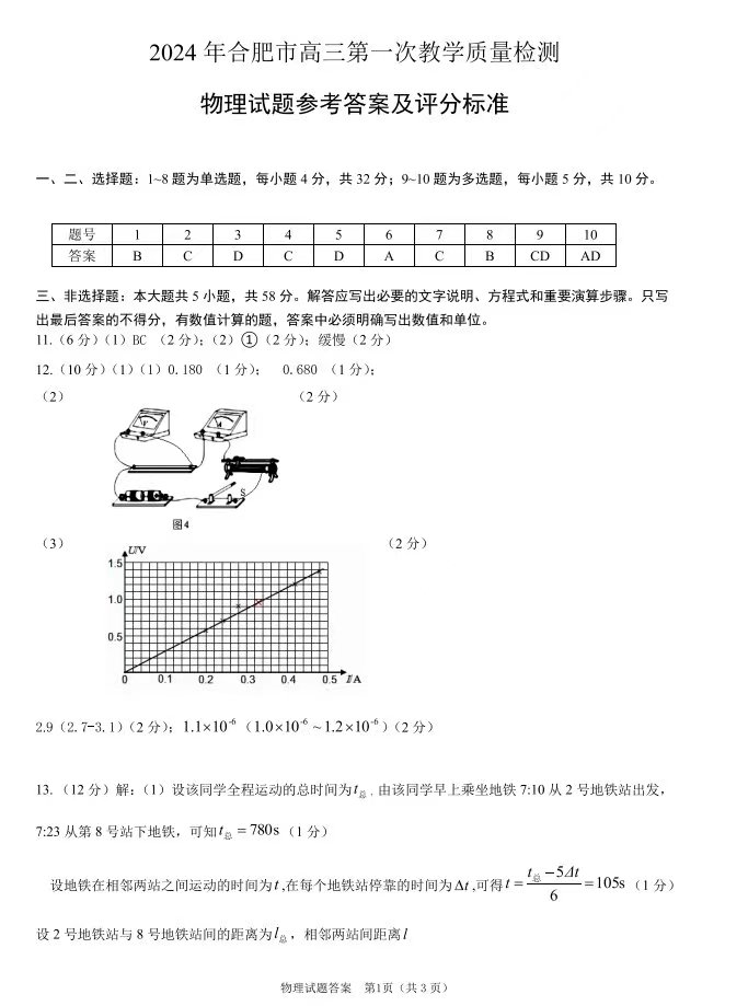 五、2024合肥一模物理试题及参考答案