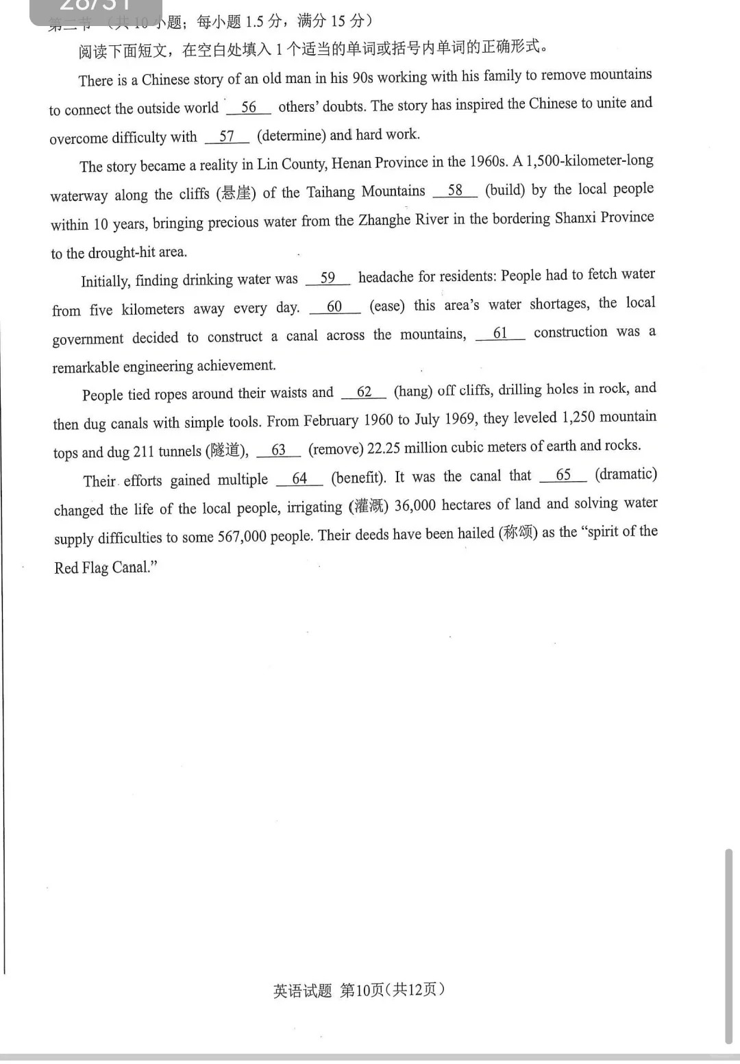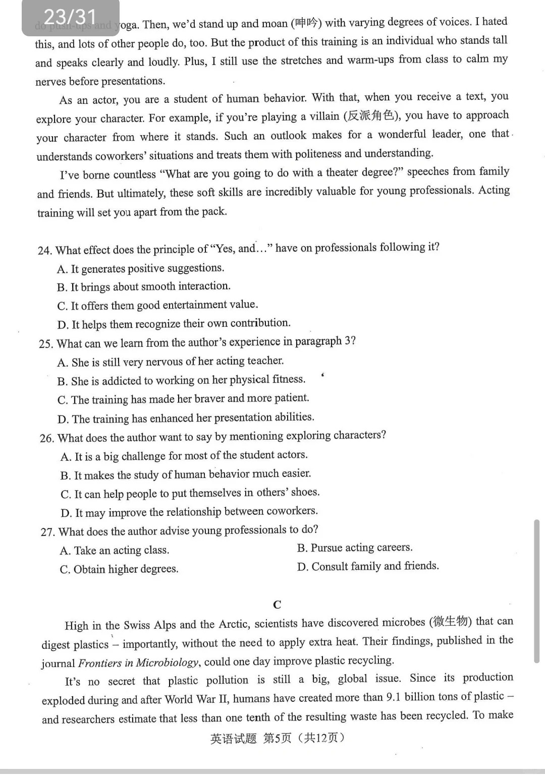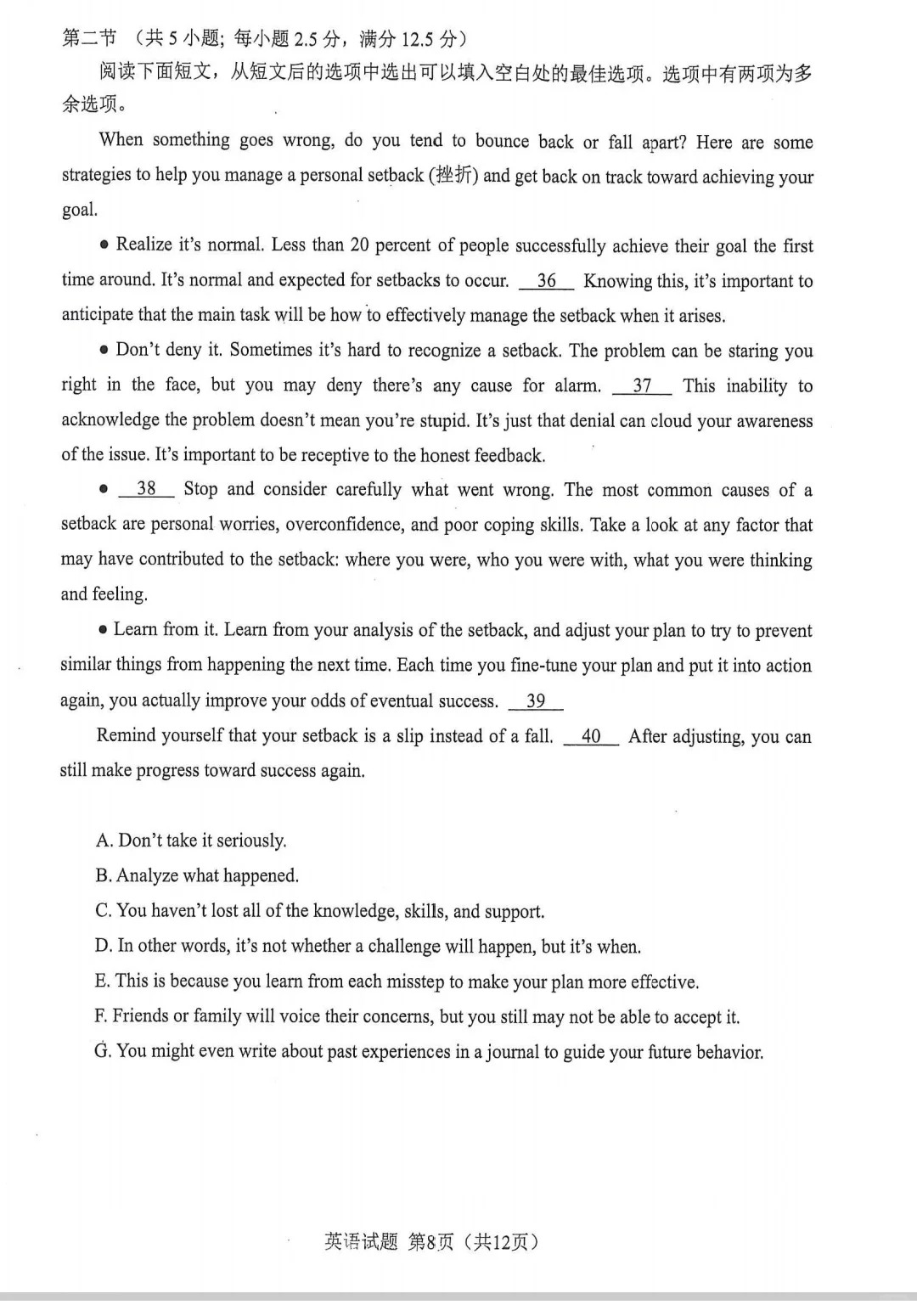 参考答案及试卷解析:英语答案及试卷真题将在考试结束后及时更新,供学生们核对答案和了解考试情况。