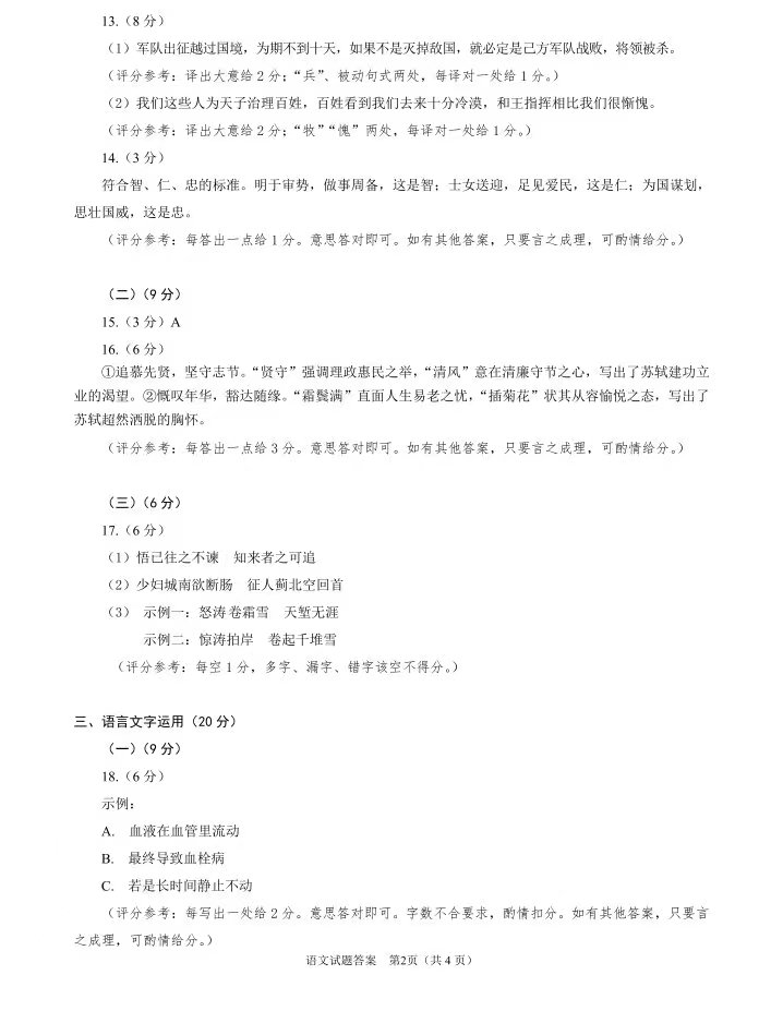 参考答案及试卷解析:语文答案及试卷解析将在语文考试结束后迅速更新,以便学生们核对试卷和回顾考试表现。