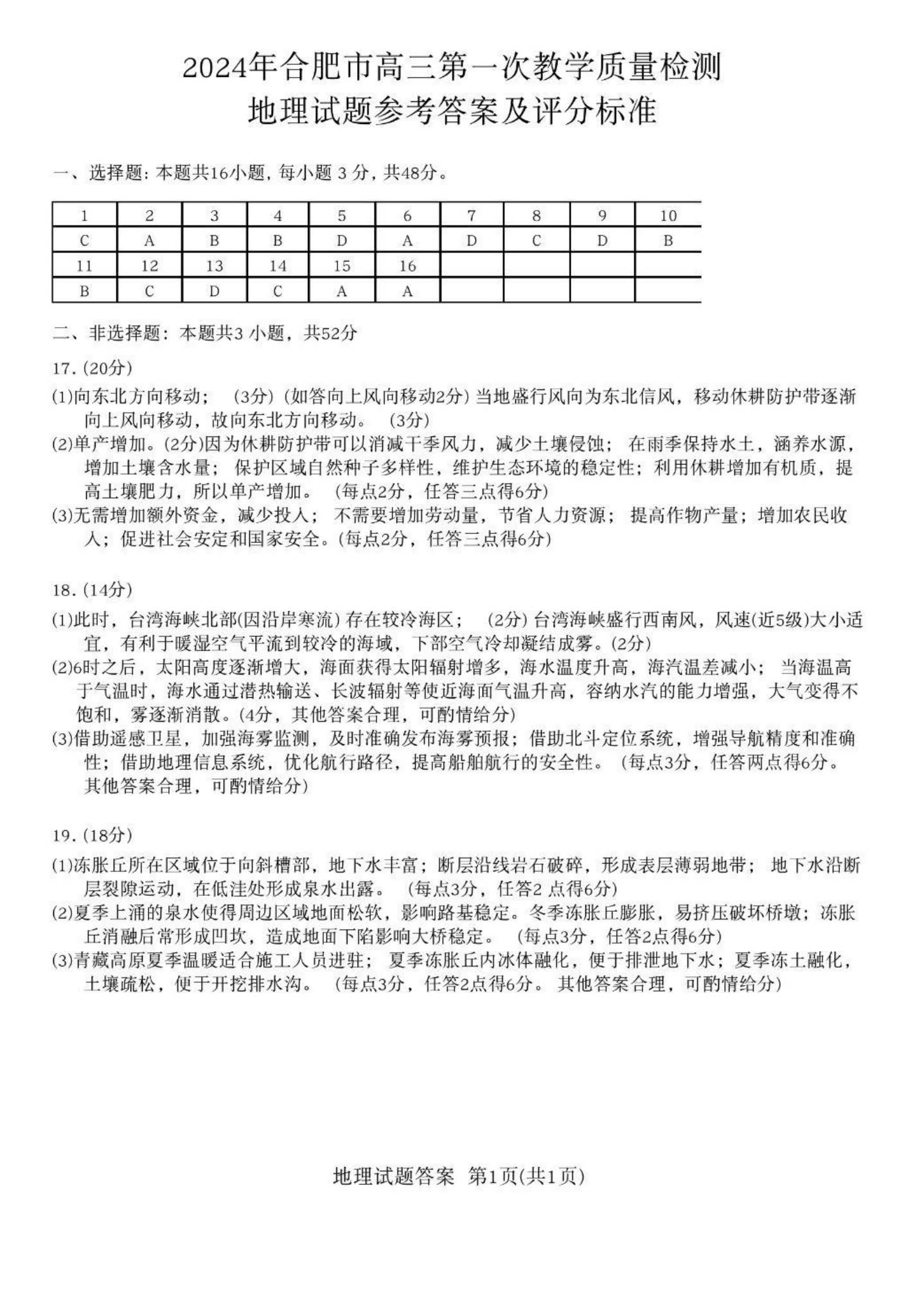 八、2024合肥一模地理试题及参考答案