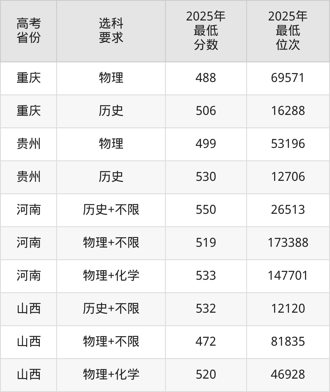 在2025年重庆高考物理类招生时,211收分最低的是四川农业大学,最低分是525分、位次是46560位。再看重庆第二师范学院,2025年在重庆物理类的最低录取分数线是488分,最低位次是69571位。