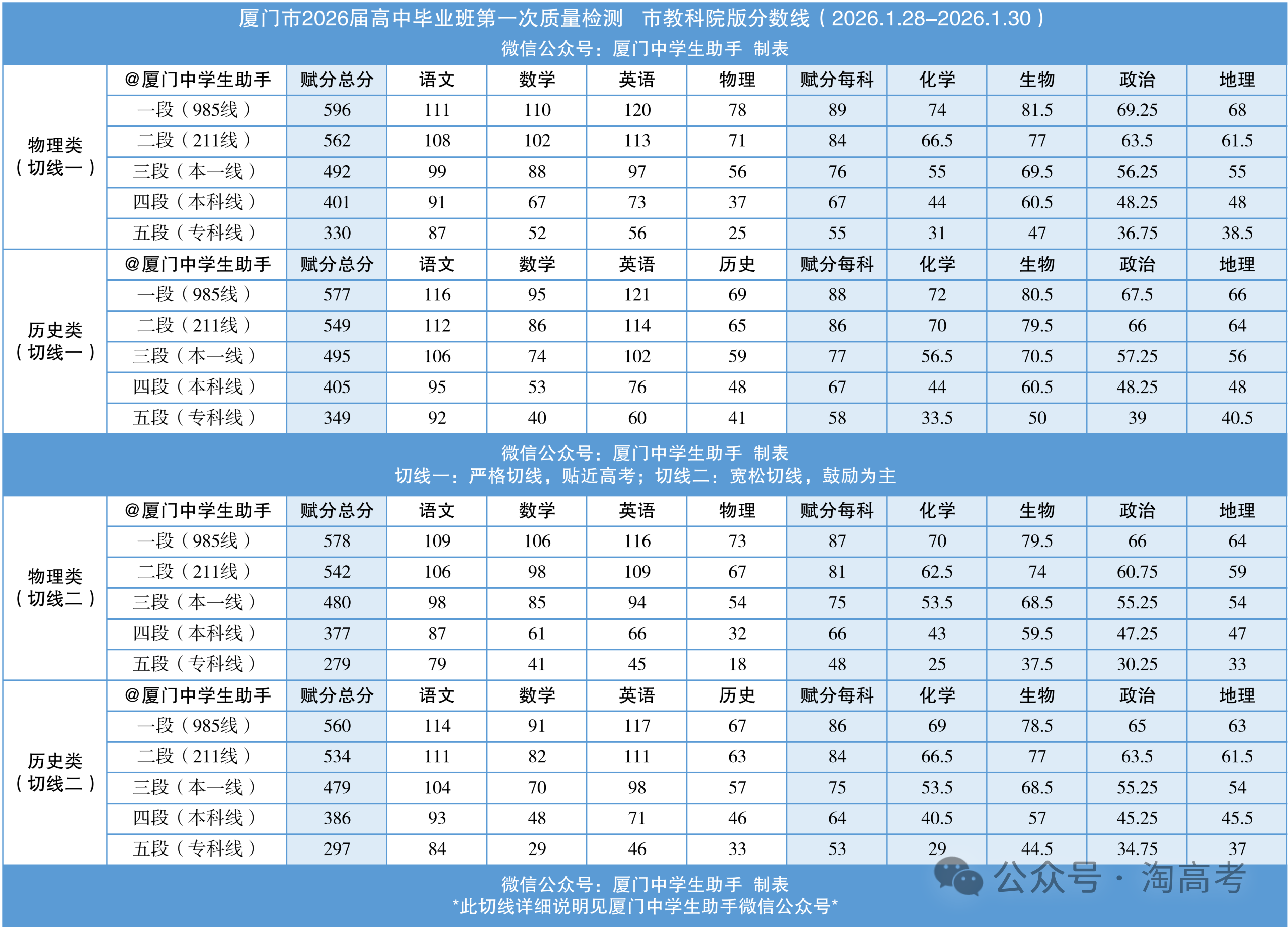 二、2026厦门一检分数线(教科院版)