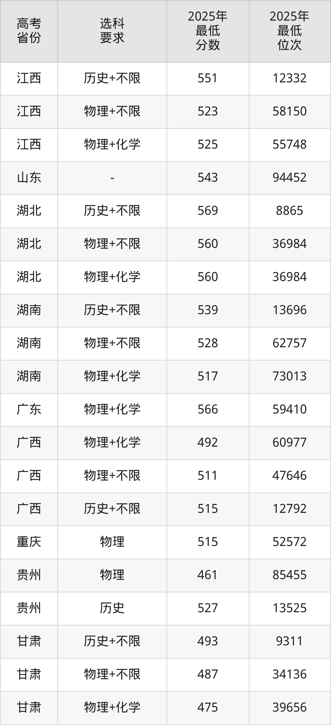 (3)电气工程及其自动化(卓越工程师计划试点班),最低分是485,录取位次是28531,学费是7000元一年。