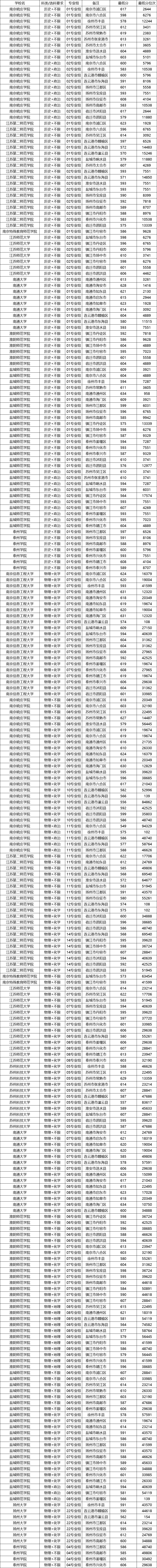 最低分:南京晓庄学院,549分,对应专业组为11专业组。