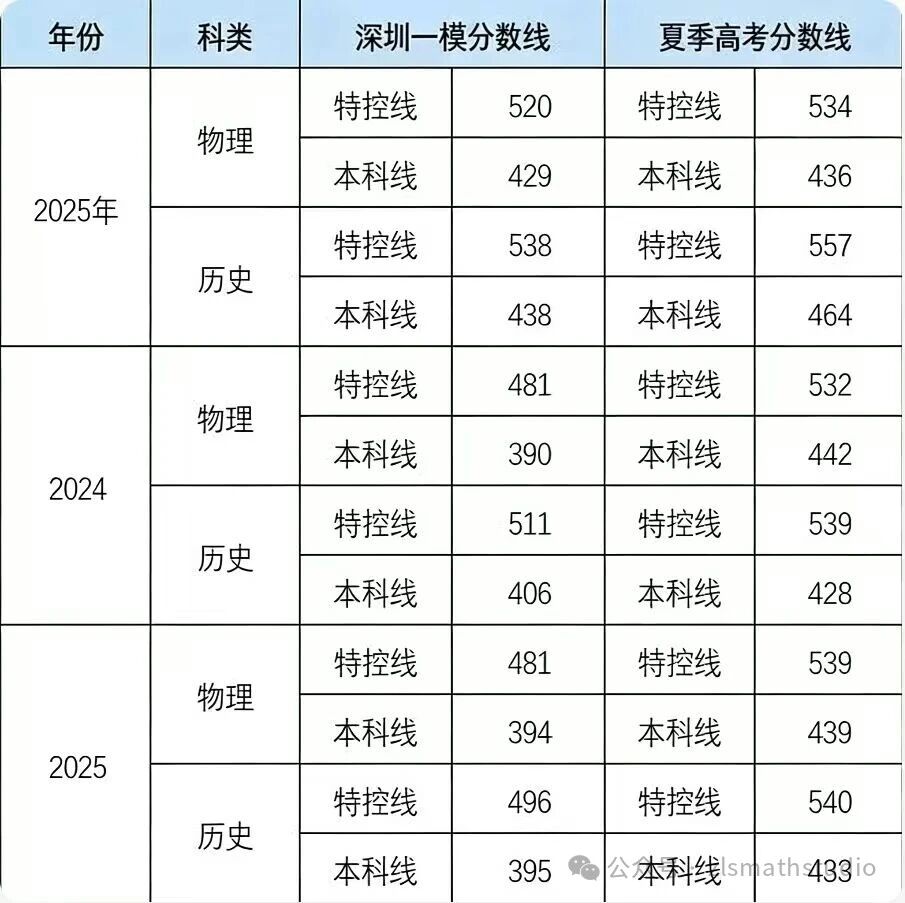 深圳一模分数线已正式发布:历史类特控线538分、本科线428分;物理类特控线520分、本科线429分。以上为2025届深一模分数线,2026届高考考生可先行参考,快速定位全省位次,为后续综评、强基及志愿填报做准备。