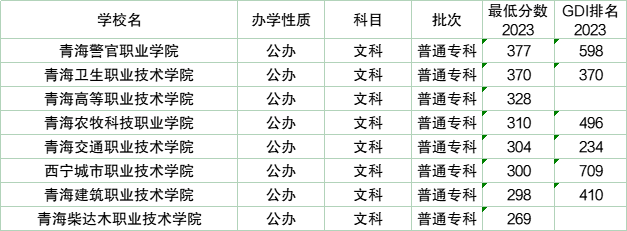1.青海警官职业学院:377分,全国大学排名为598名。