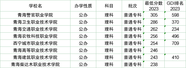 1.青海警官职业学院:305分,全国大学排名为598名。