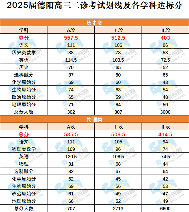德阳二诊按照A段、I段、II段三个批次进行划线,分别对应985/211线、一本线和本科线。具体分数线及上线人数如下: