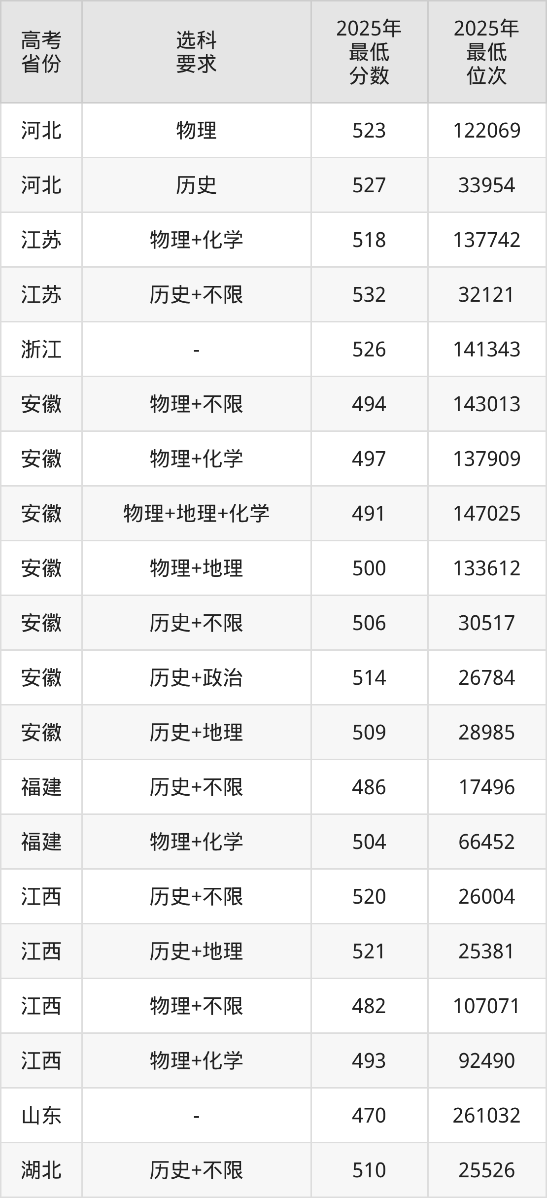 在2025年安徽高考物理类招生时,211收分最低的是贵州大学051组(中外合作办学),最低分是515分、位次是113446位。再看池州学院,2025年在安徽物理类的最低录取分数线是491分,最低位次是147025位。