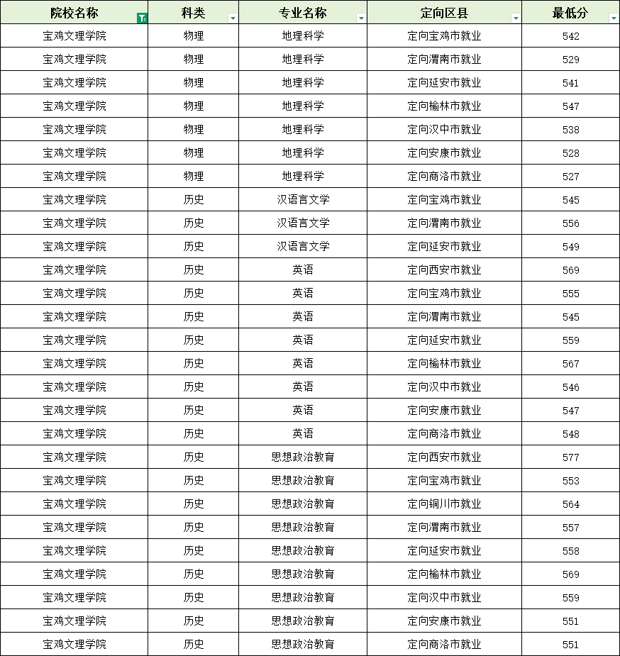 | 陕西理工大学 | 历史 | 汉语言文学 | 定向至 汉中市 |