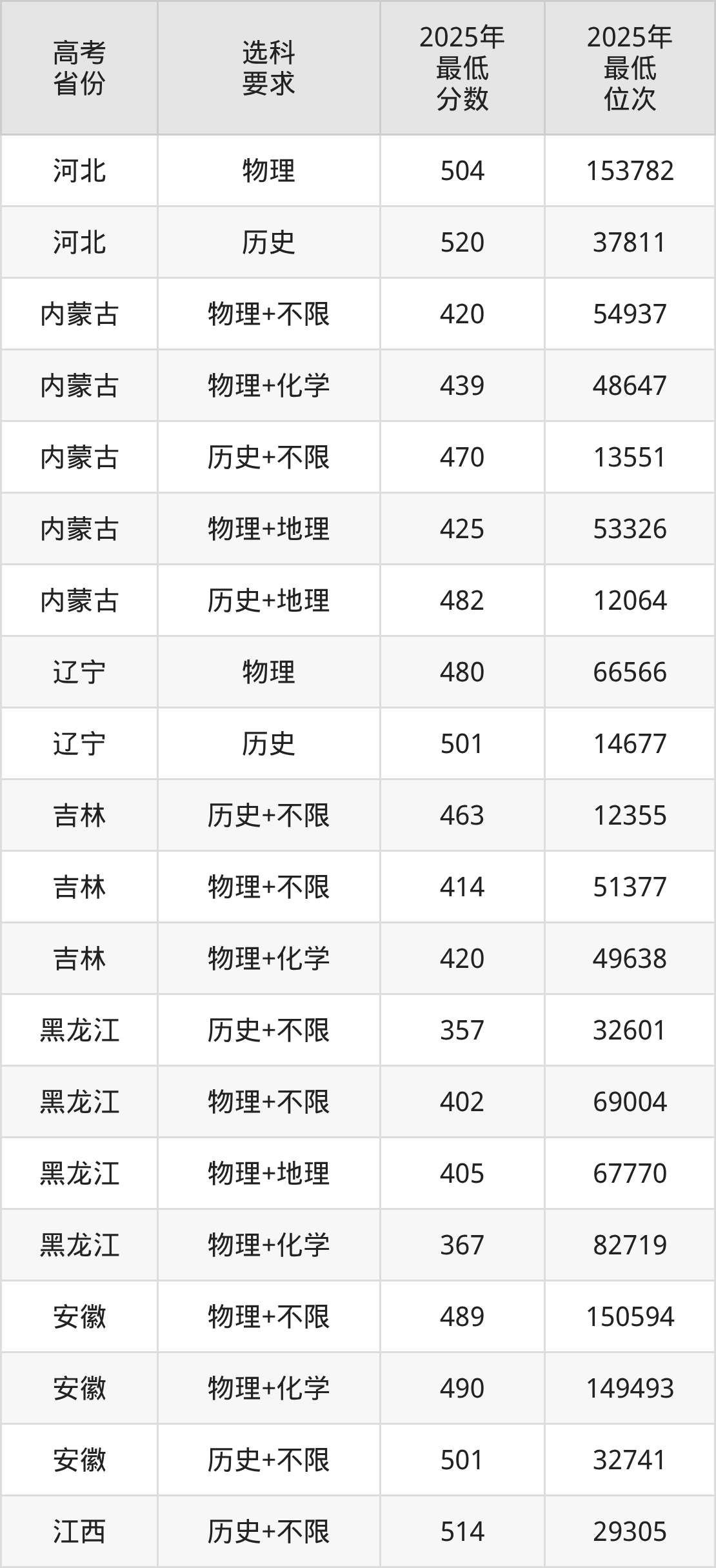 在2025年黑龙江高考物理类招生时,211收分最低的是郑州大学第003组,最低分是389分、位次是74217位。再看绥化学院,2025年在黑龙江物理类的最低录取分数线是367分,最低位次是82719位。