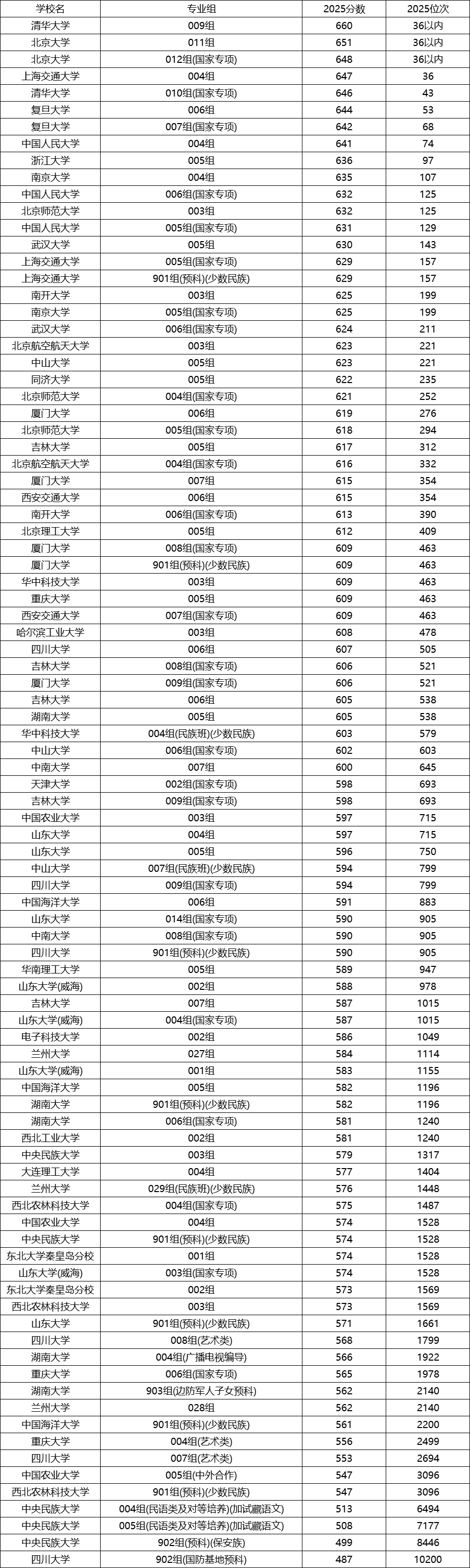 以下是全国39所985大学2025年在甘肃高考历史类本科批的最低录取分数线及位次汇总,2026年甘肃历史类考生请参考:
