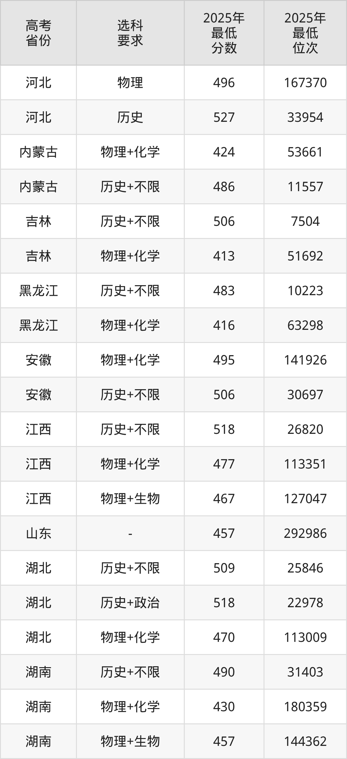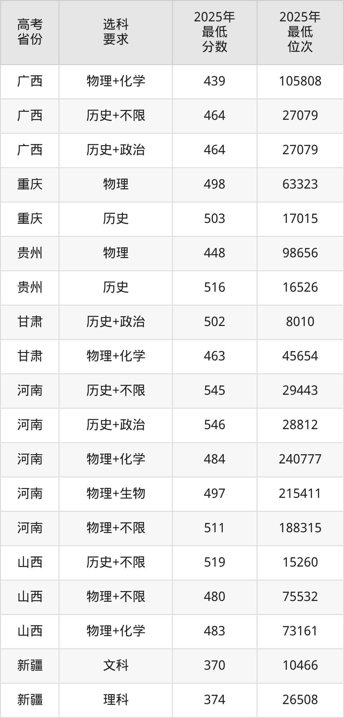 在2025年新疆高考理科招生时,211收分最低的是四川农业大学,最低分是421分、位次是18415位。再看榆林大学,2025年在新疆理科的最低录取分数线是374分,最低位次是26508位。