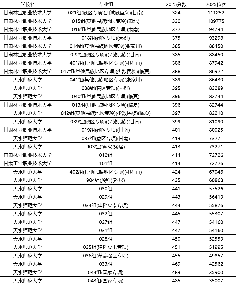 5.甘肃林业职业技术大学021组(藏区专项)(加试藏语文)(甘南)最低分:324分