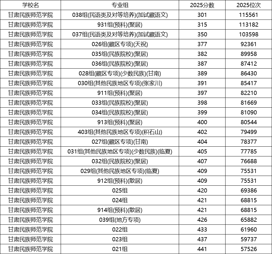 3.甘肃民族师范学院038组(民语类及对等培养)(加试藏语文)最低分:301分
