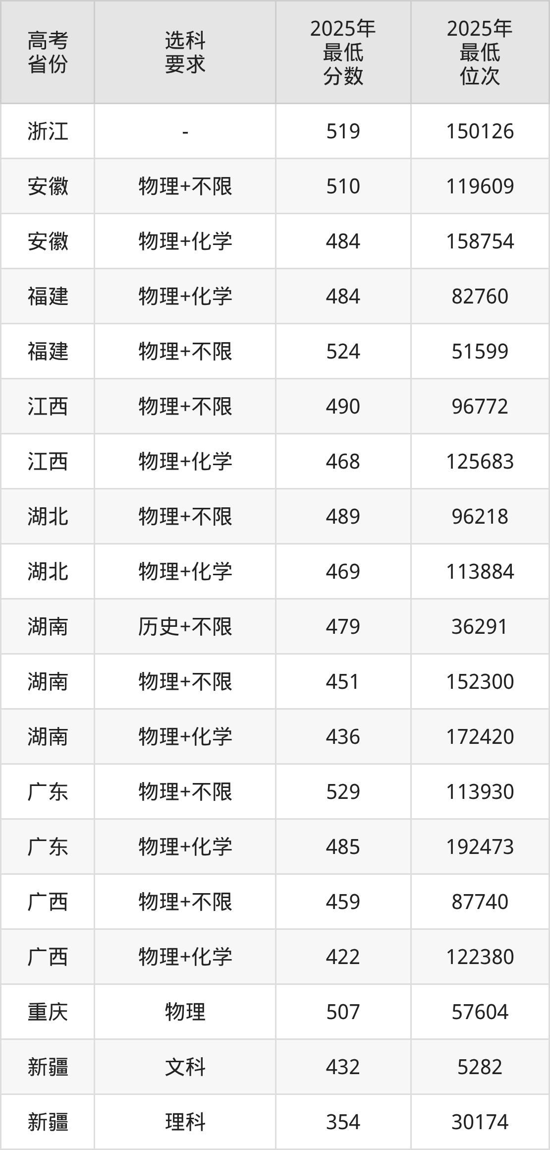 在2025年湖南高考物理类招生时,公办本科收分最低的是新疆和田学院第108组,最低分是311分、位次是288279位。再看湖南中医药大学湘杏学院,2025年在湖南物理类的最低录取分数线是436分,最低位次是172420位。