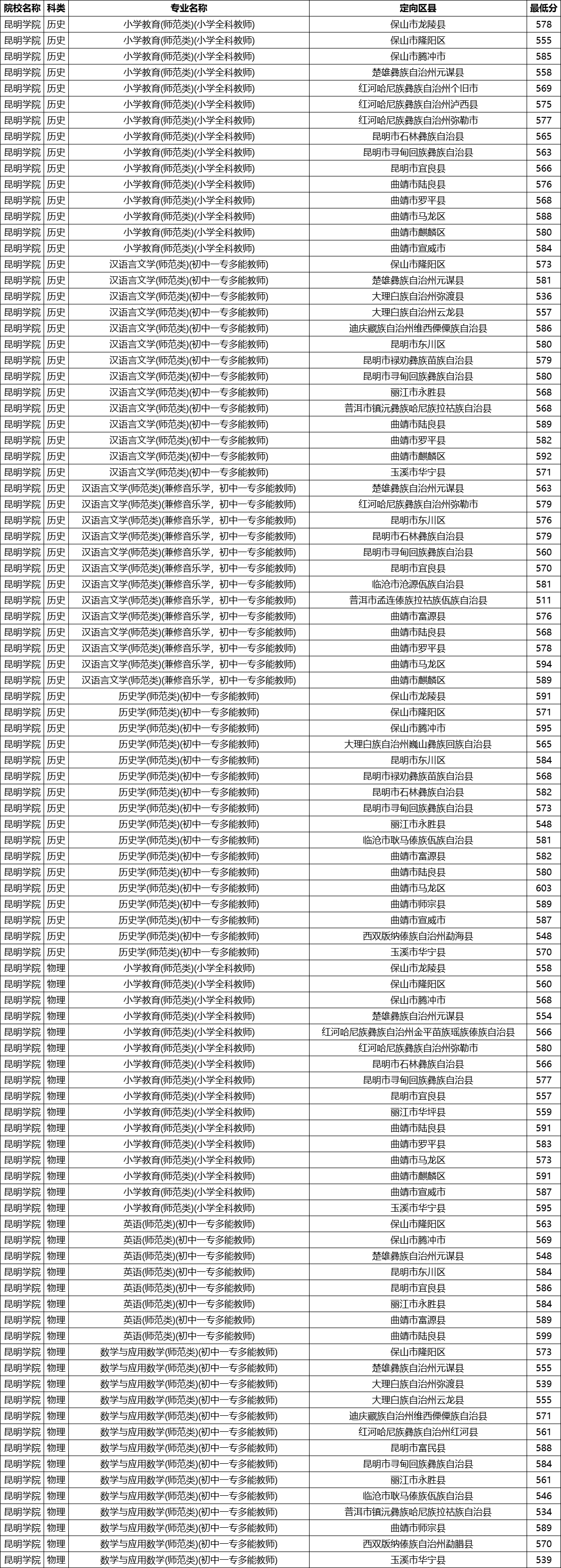 2025年云南省属公费师范生主要由昆明学院这1所院校承担培养计划,要求公费师范生毕业后须在定向的就业单位工作不少于6年,各校的录取情况整理如下,考生可以参考查阅: