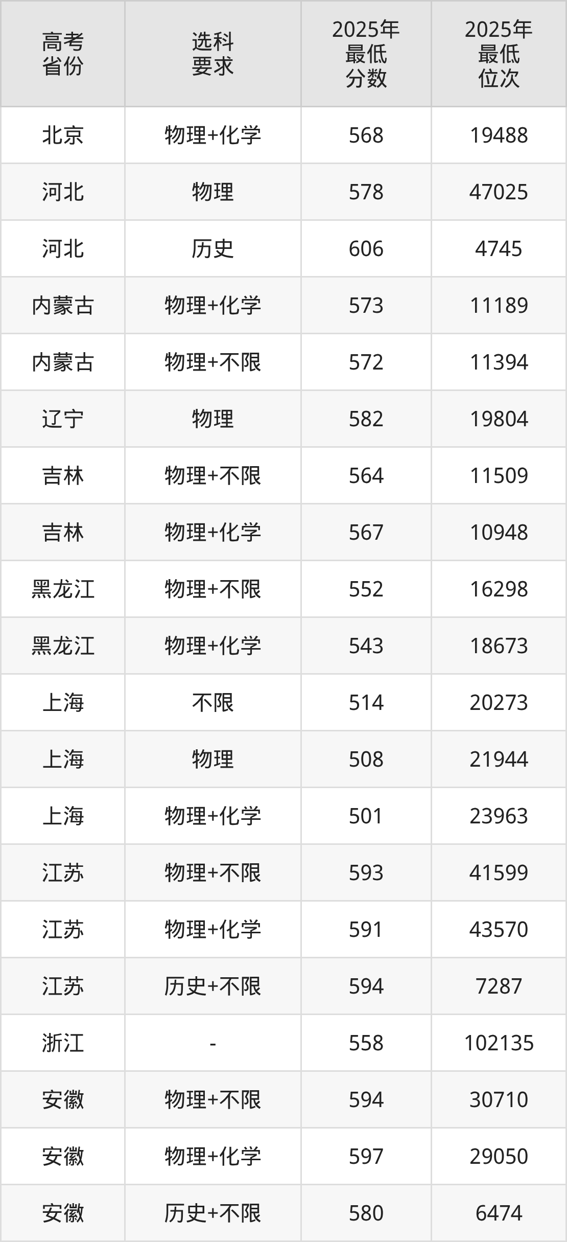 在2025年浙江高考招生时,211收分最低的是东北农业大学,最低分是541分、位次是123189位。再看中国计量大学,2025年在浙江的最低录取分数线是558分,最低位次是102135位。
