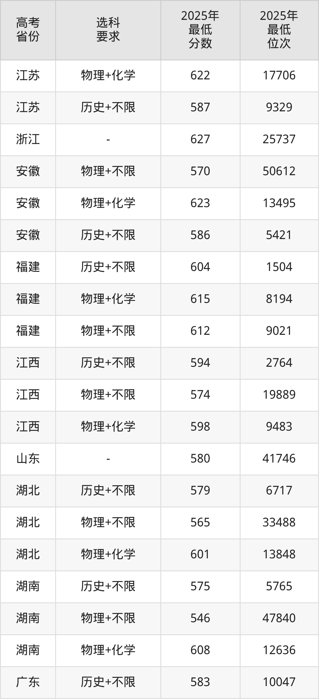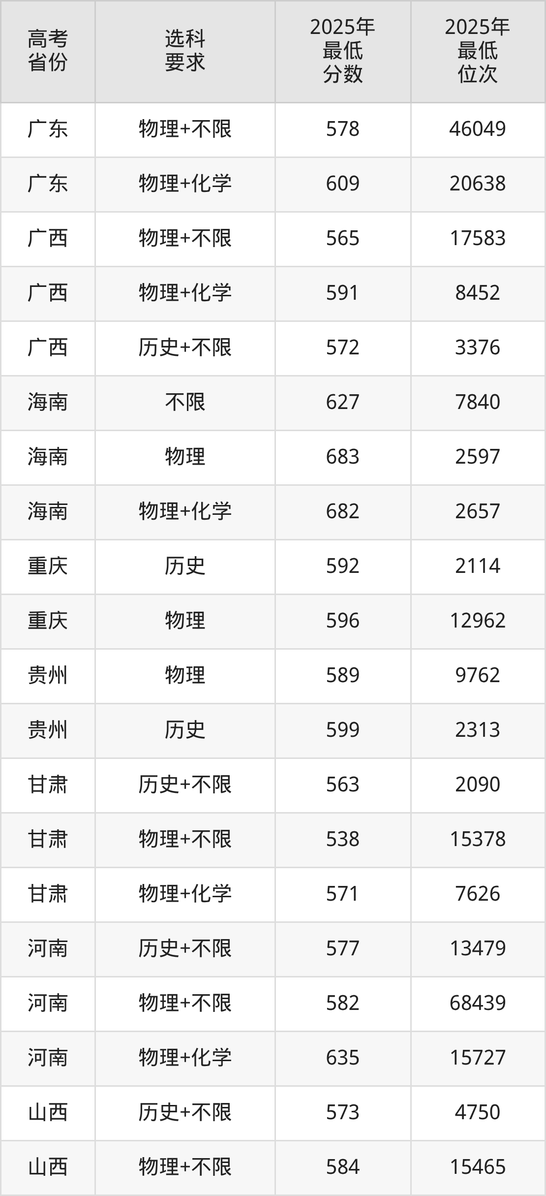 在2025年四川高考物理类招生时,985收分最低的是武汉大学专业组111(定向),最低分是576分、位次是40707位。再看西南财经大学,2025年在四川物理类的最低录取分数线是573分,最低位次是43244位。