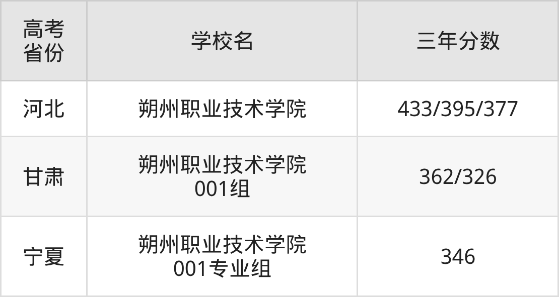朔州职业技术学院在全国多省市招生,不同省份录取分数线差异较大,下方表格整合2023-2025年物理类、历史类核心录取数据(分数格式:2025/2024/2023),外地考生可按自身高考省份查找,结合本地位次精准定位。