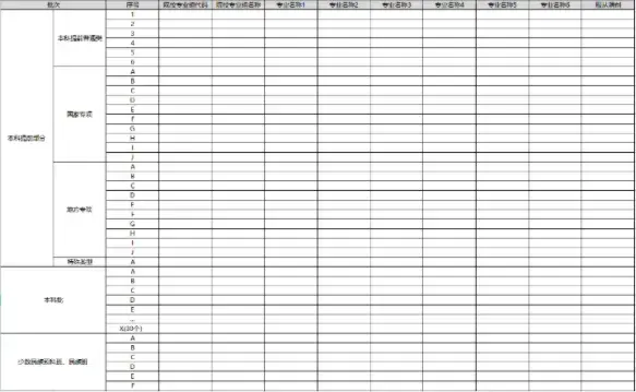 体育类(定向公费师范生):设置6个院校专业组志愿,结构同上。