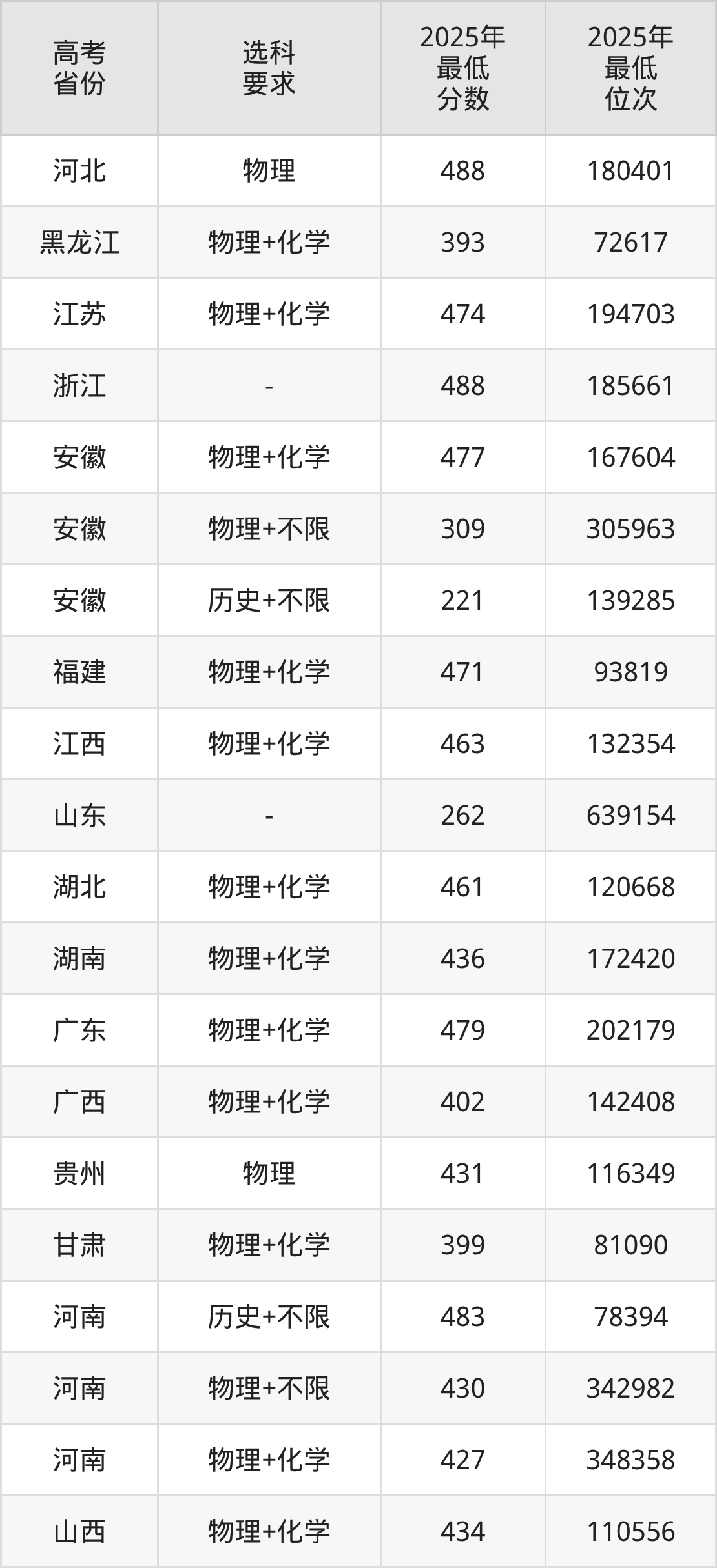 在2025年河南高考物理类招生时,公办本科收分最低的是福建商学院第801组(预科组),最低分是423分、位次是355229位。再看商丘工学院,2025年在河南物理类的最低录取分数线是427分,最低位次是348358位。