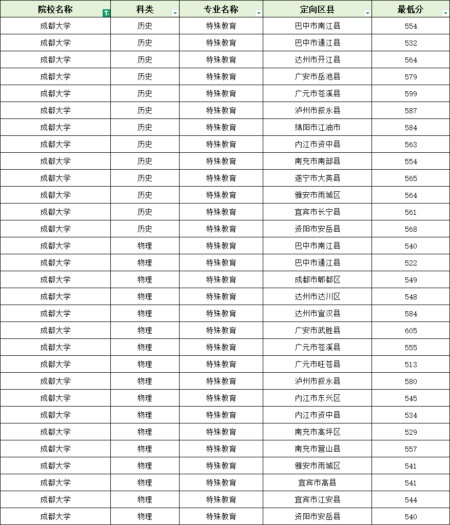 定向至巴中市南江县,特殊教育540分