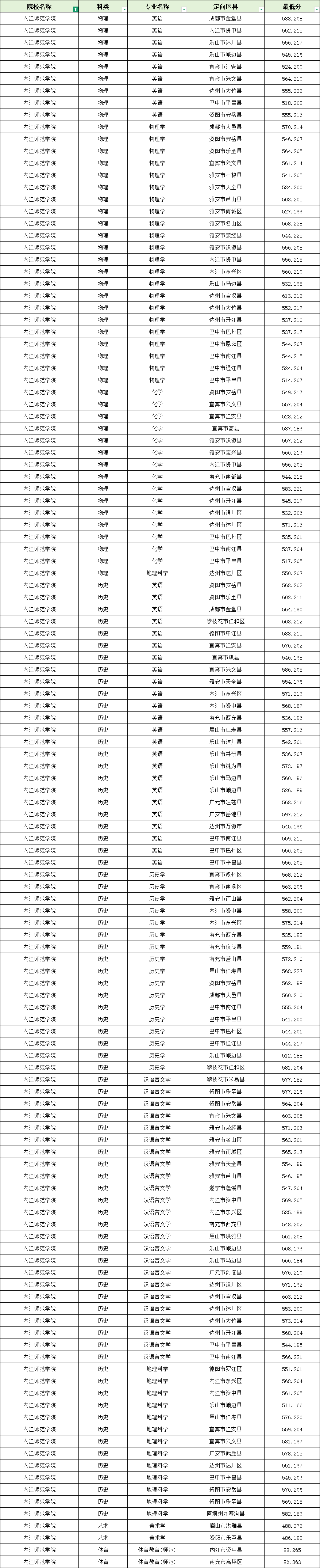 2、内江师范学院录取情况